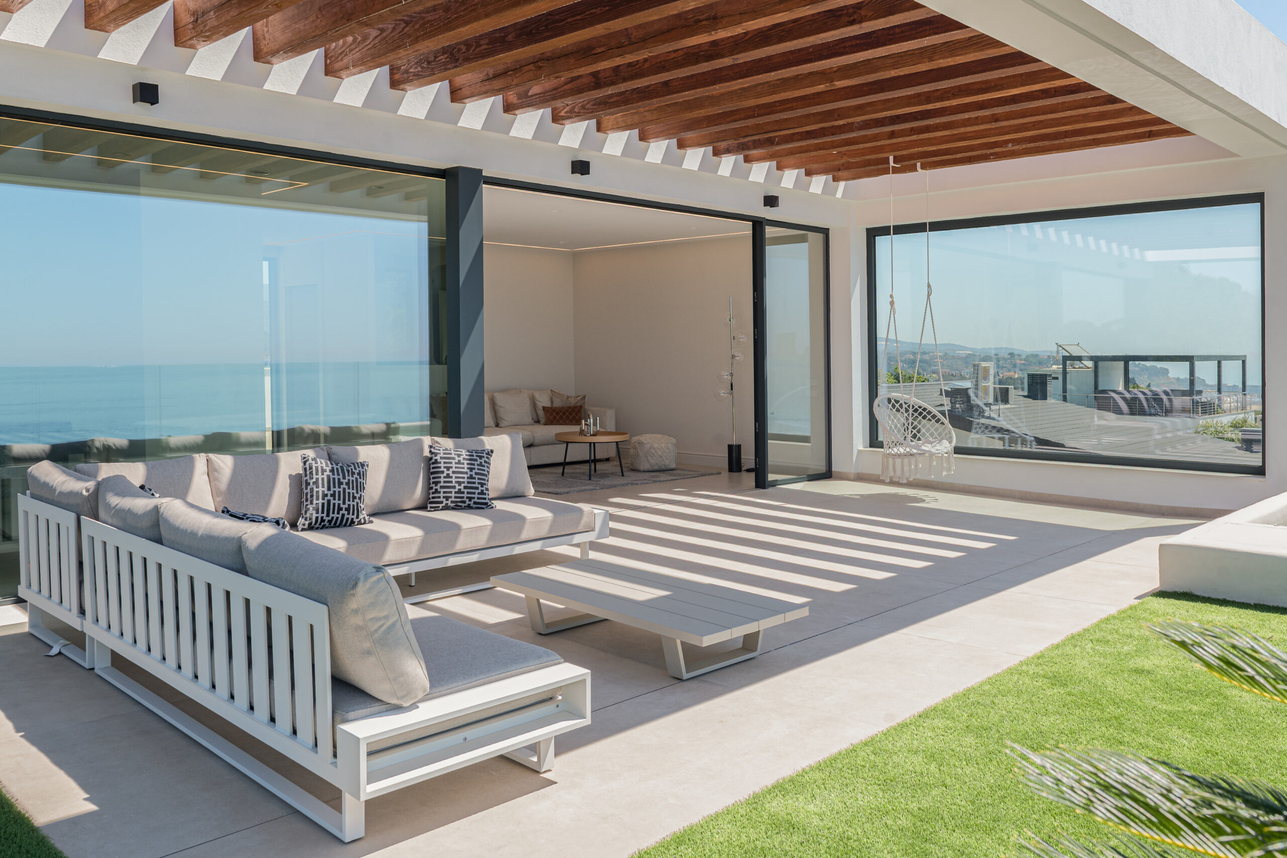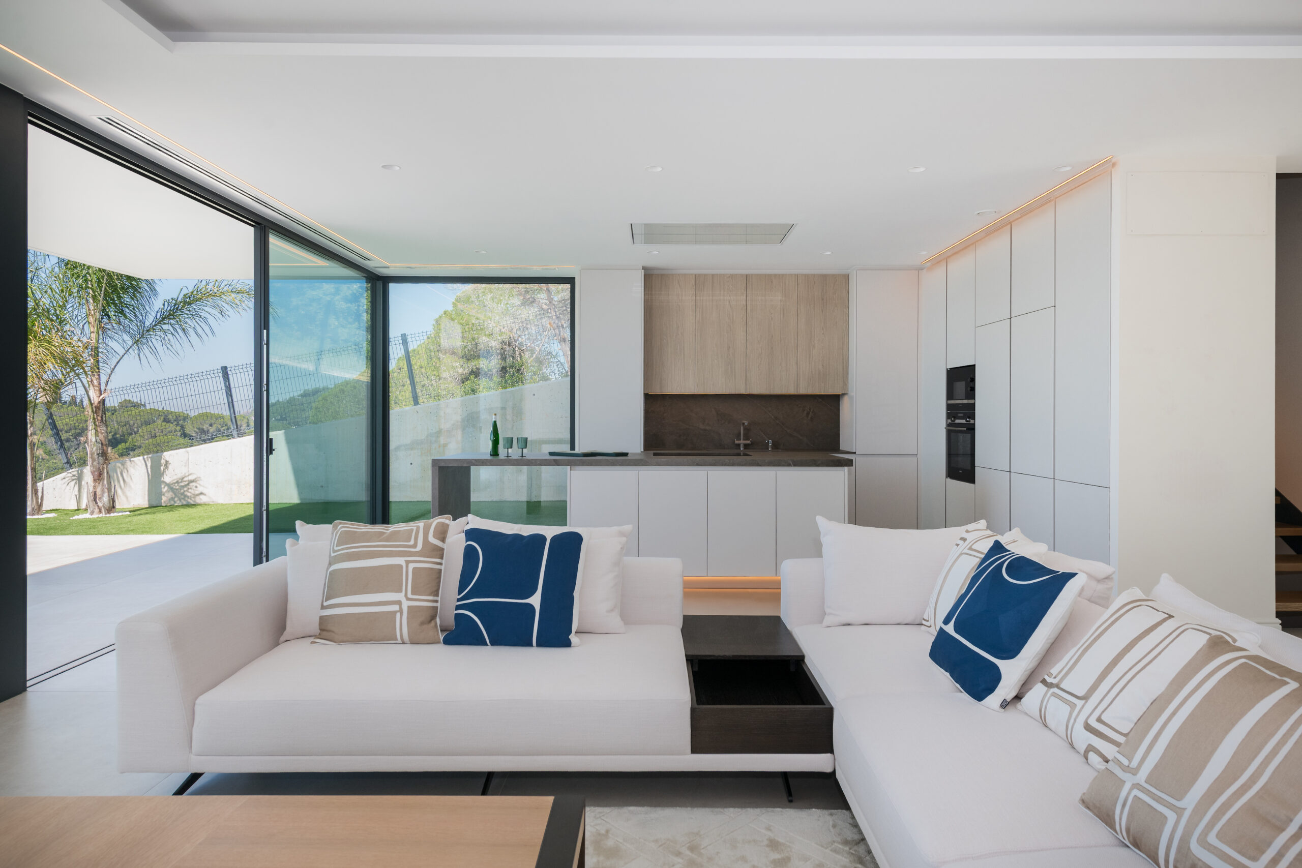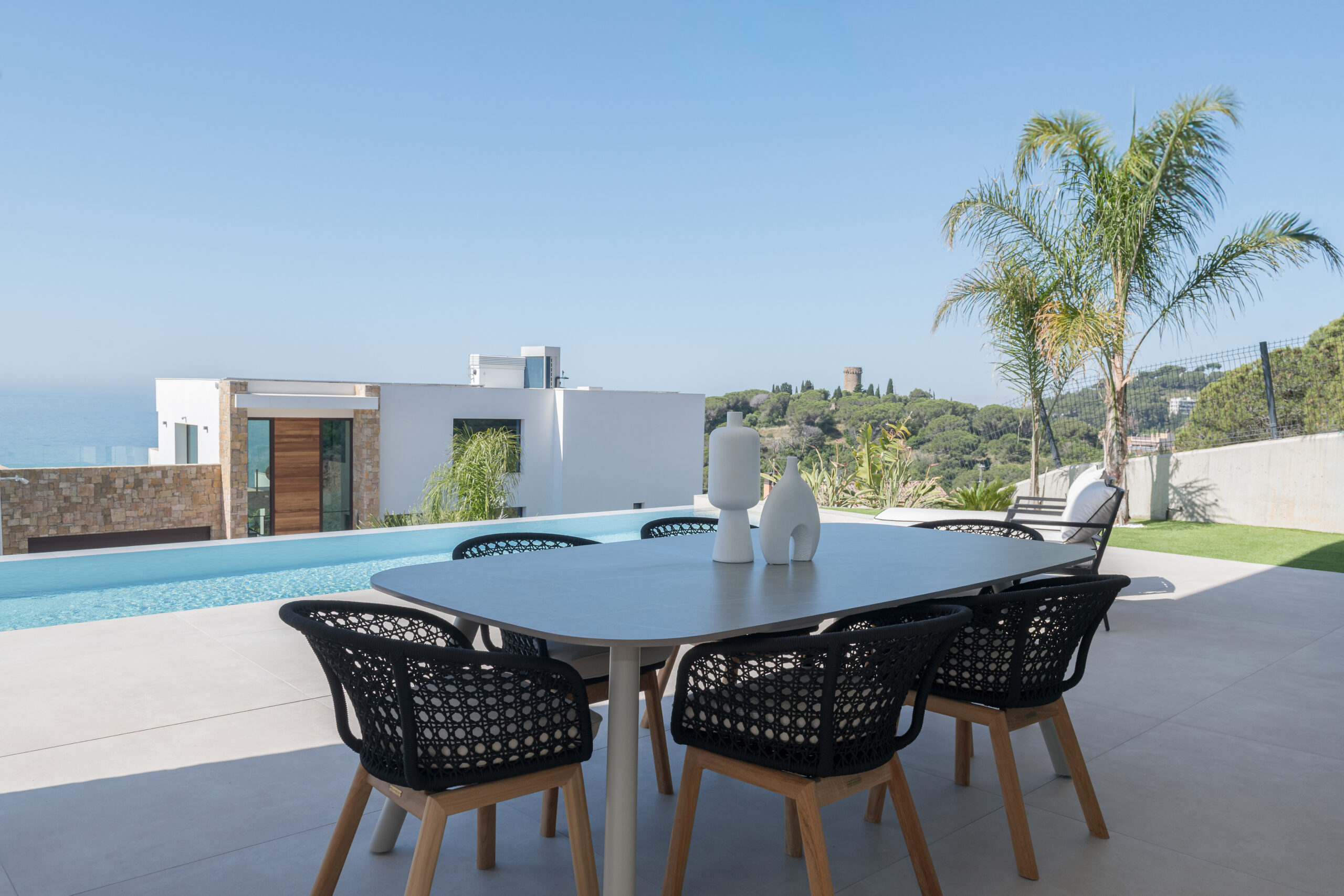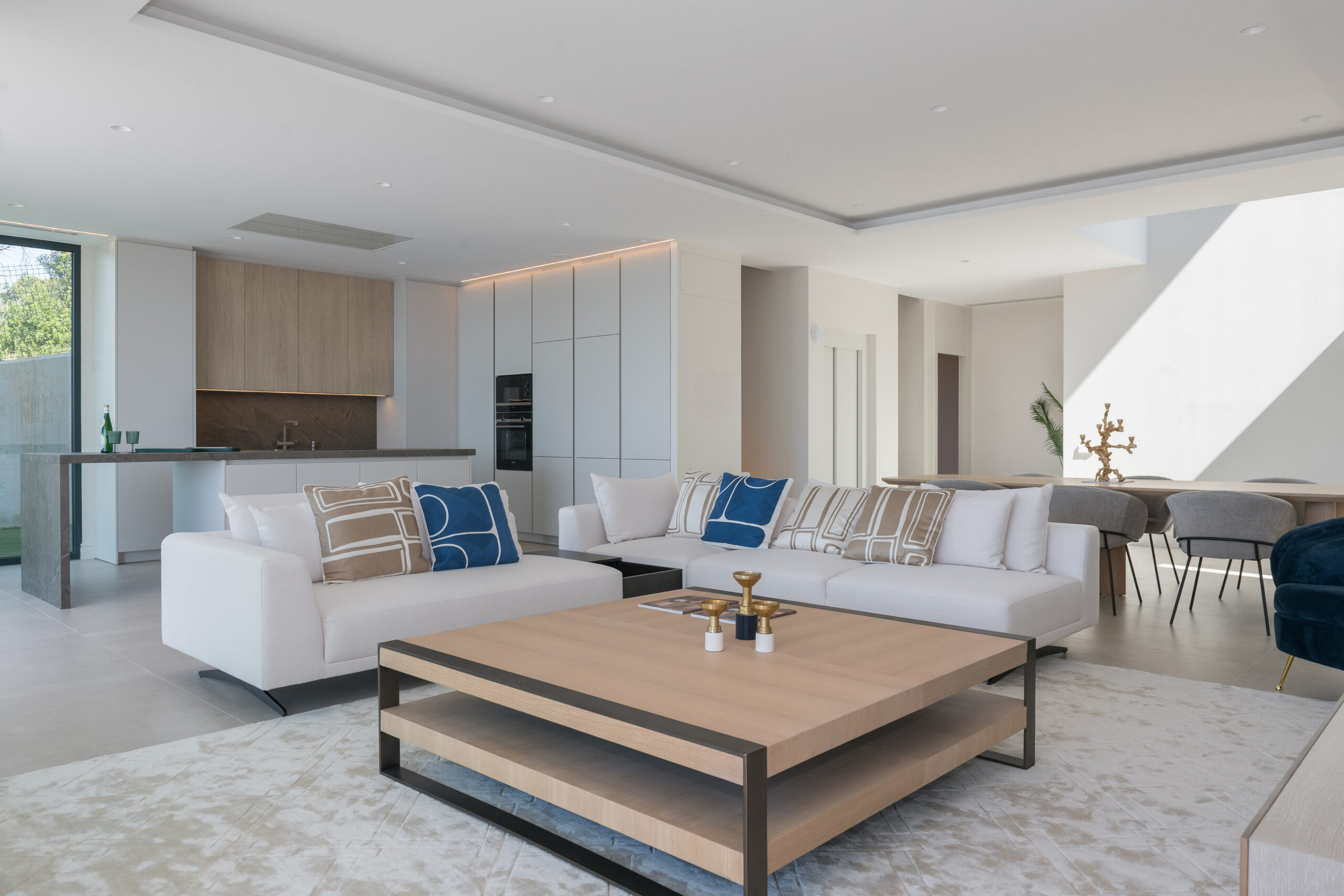 This beautifully newly built villa was furnished for home staging purposes. We selected luxurious Eichholtz furniture to make the property more appealing to future clients.