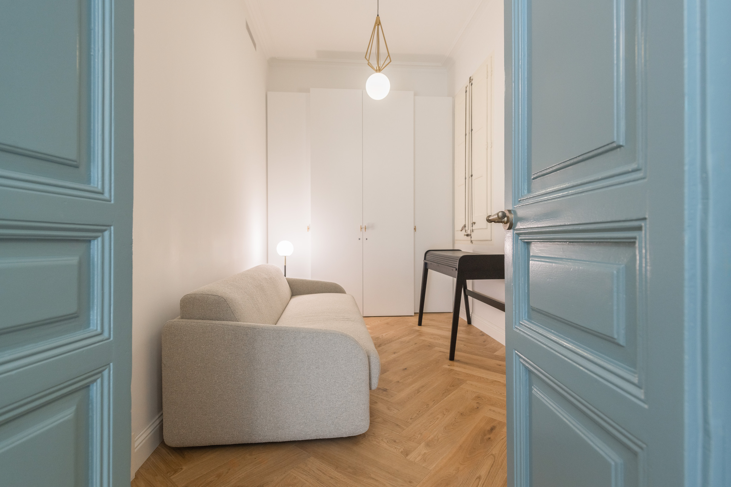 For this client we made a unique design that matches the very special features of this apartment. We painted the doors and windows and furnished the entire apartment.