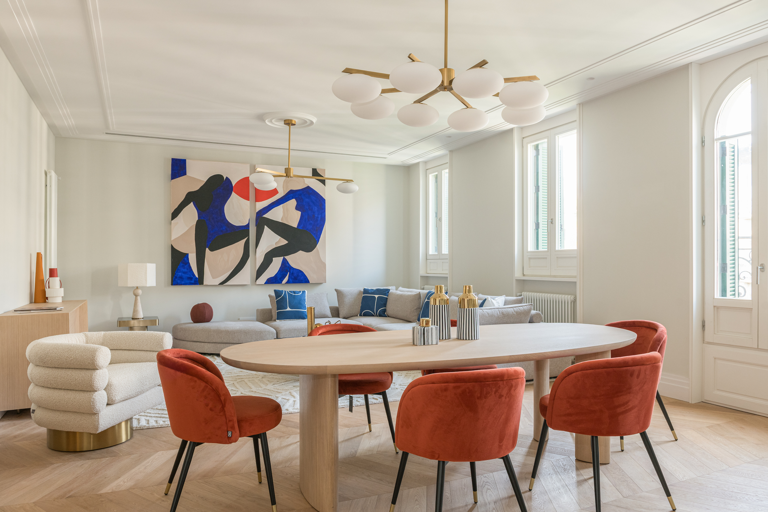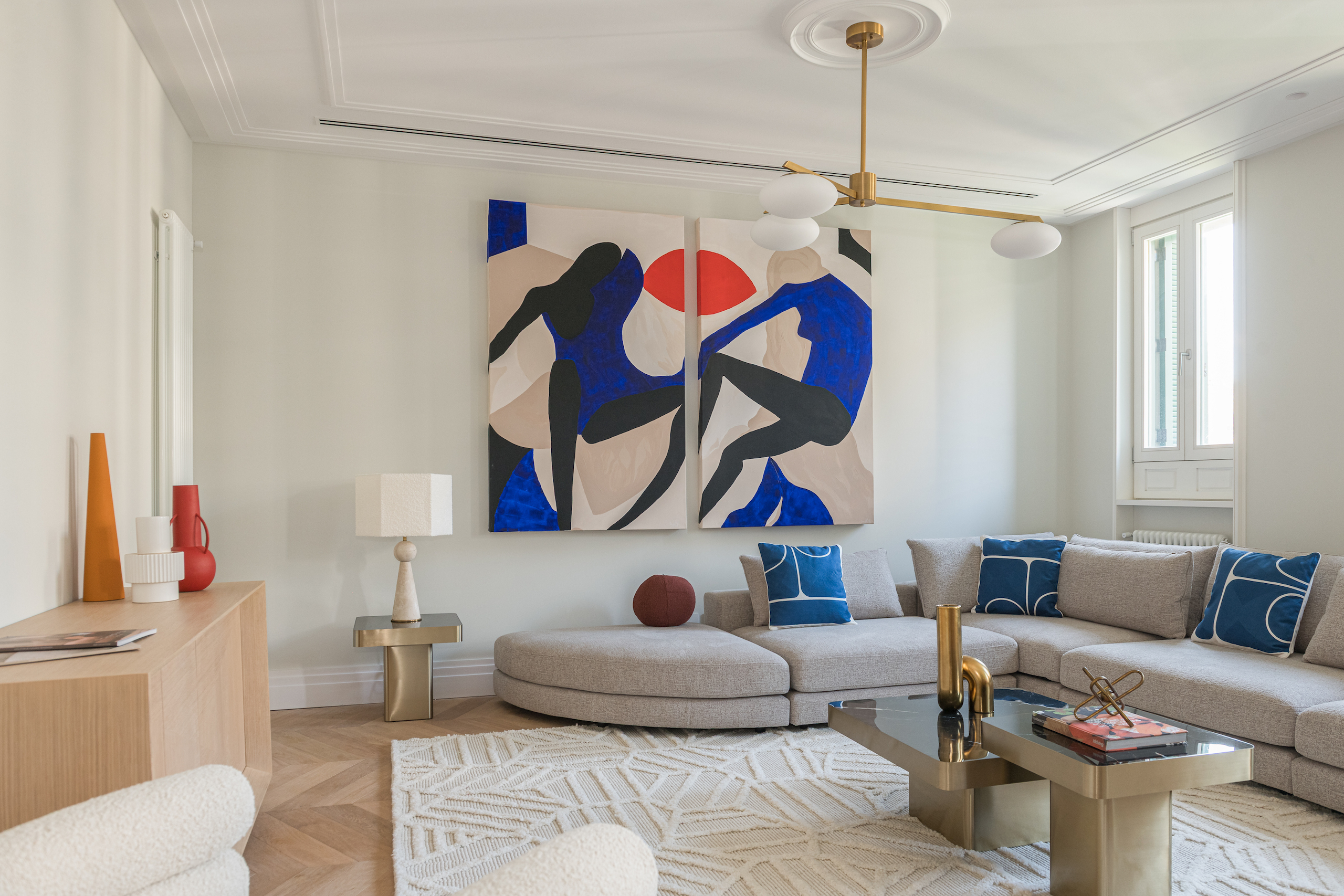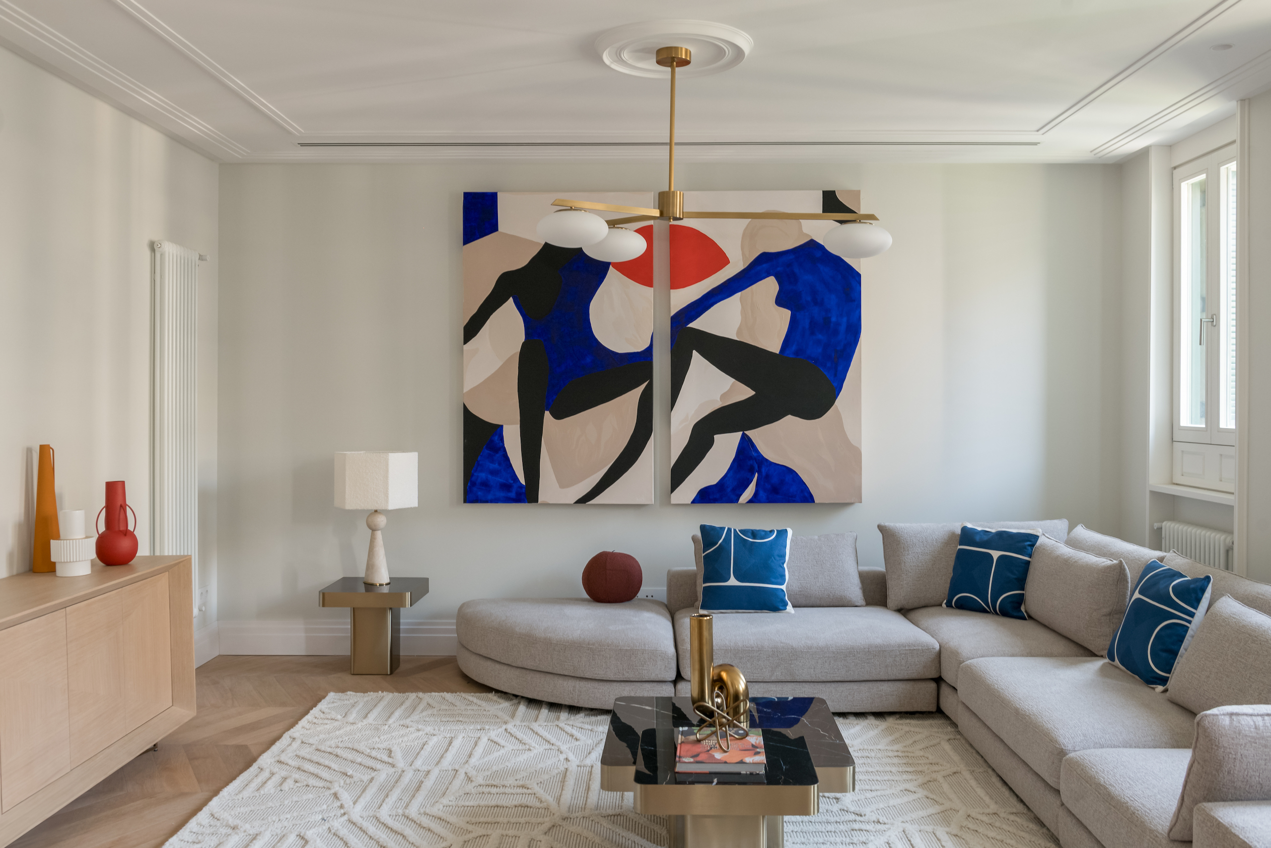 When we were making a design for this beautiful apartment in the center of Barcelona, we were very inspired by luxury hotels. With special art pieces we gave more color to the spaces. Who wouldn’t want to wake up in this bedroom every morning, right?
