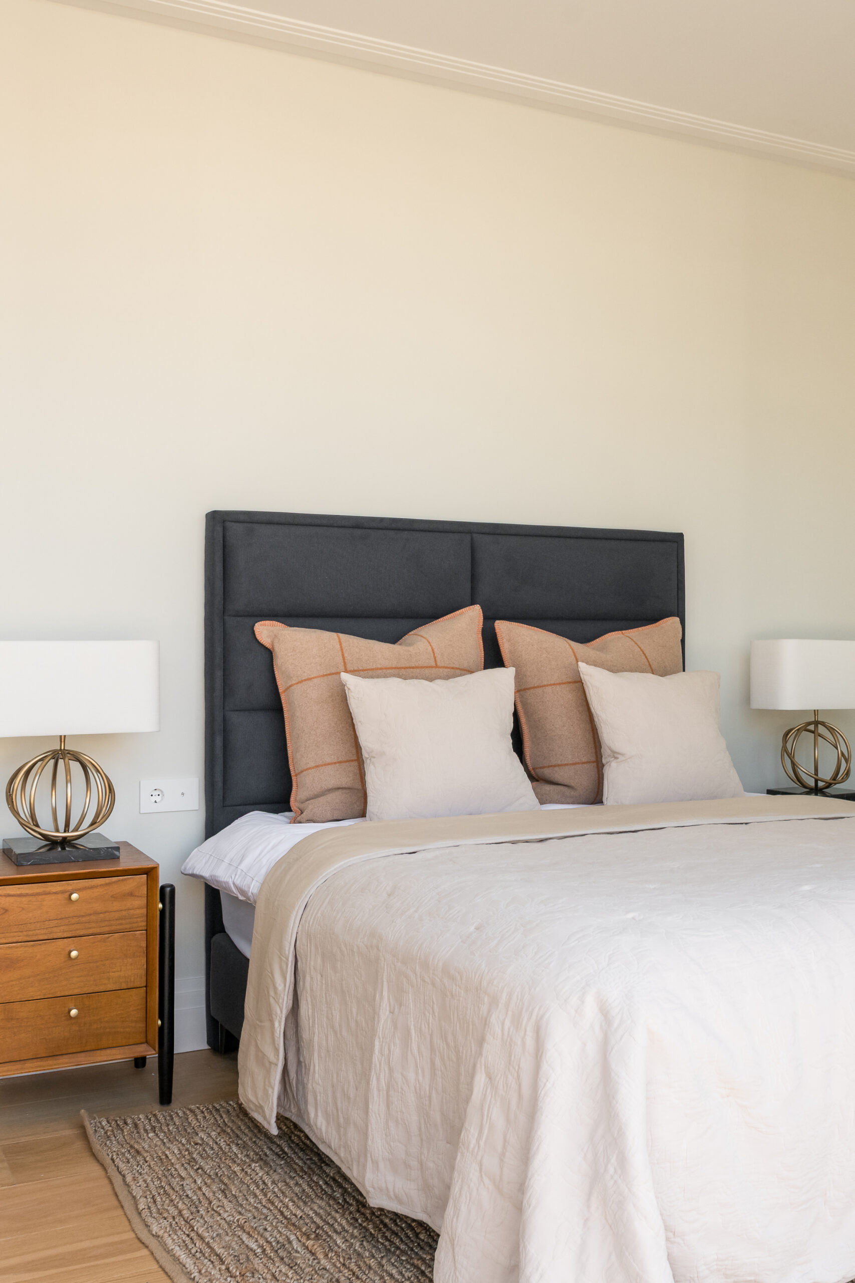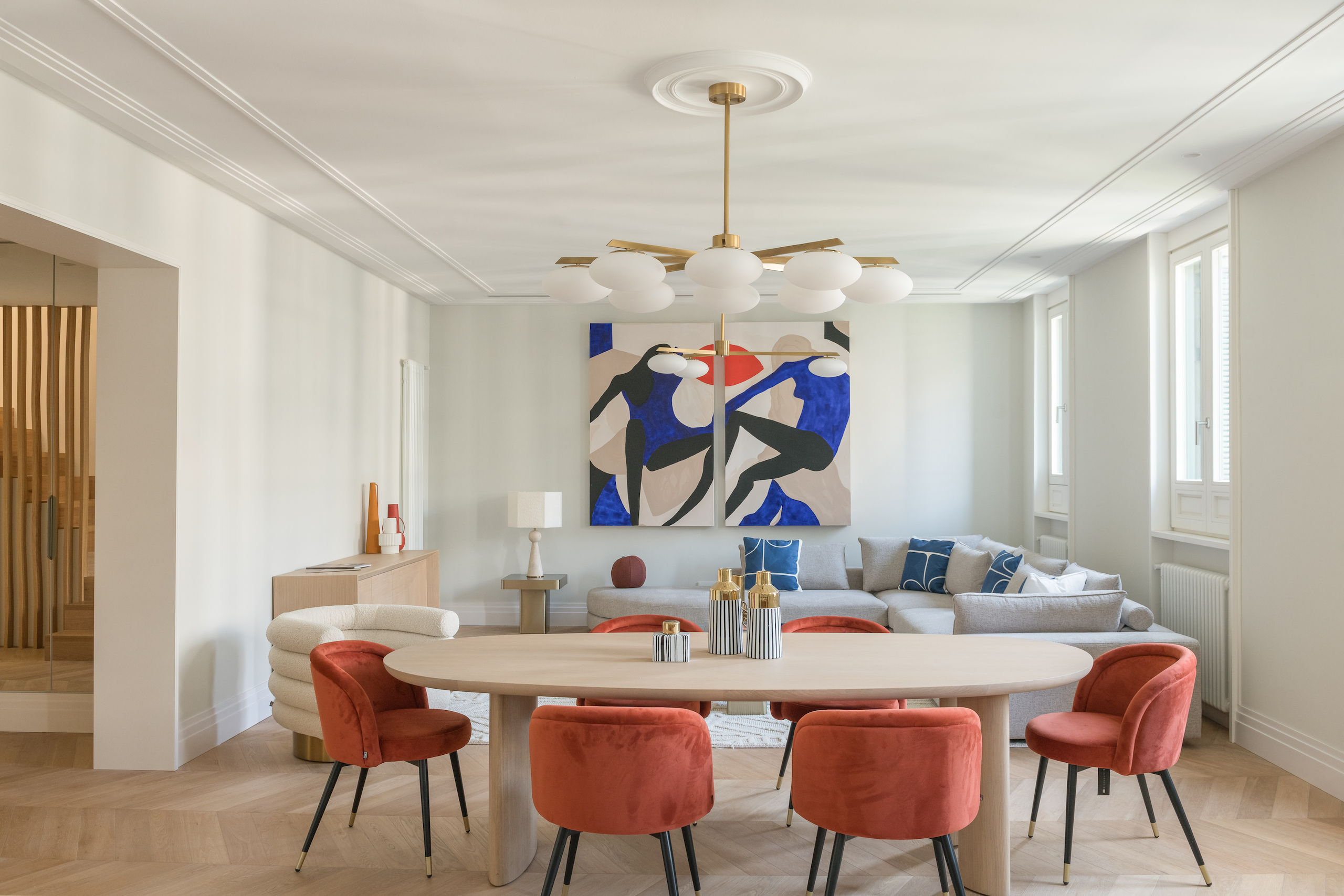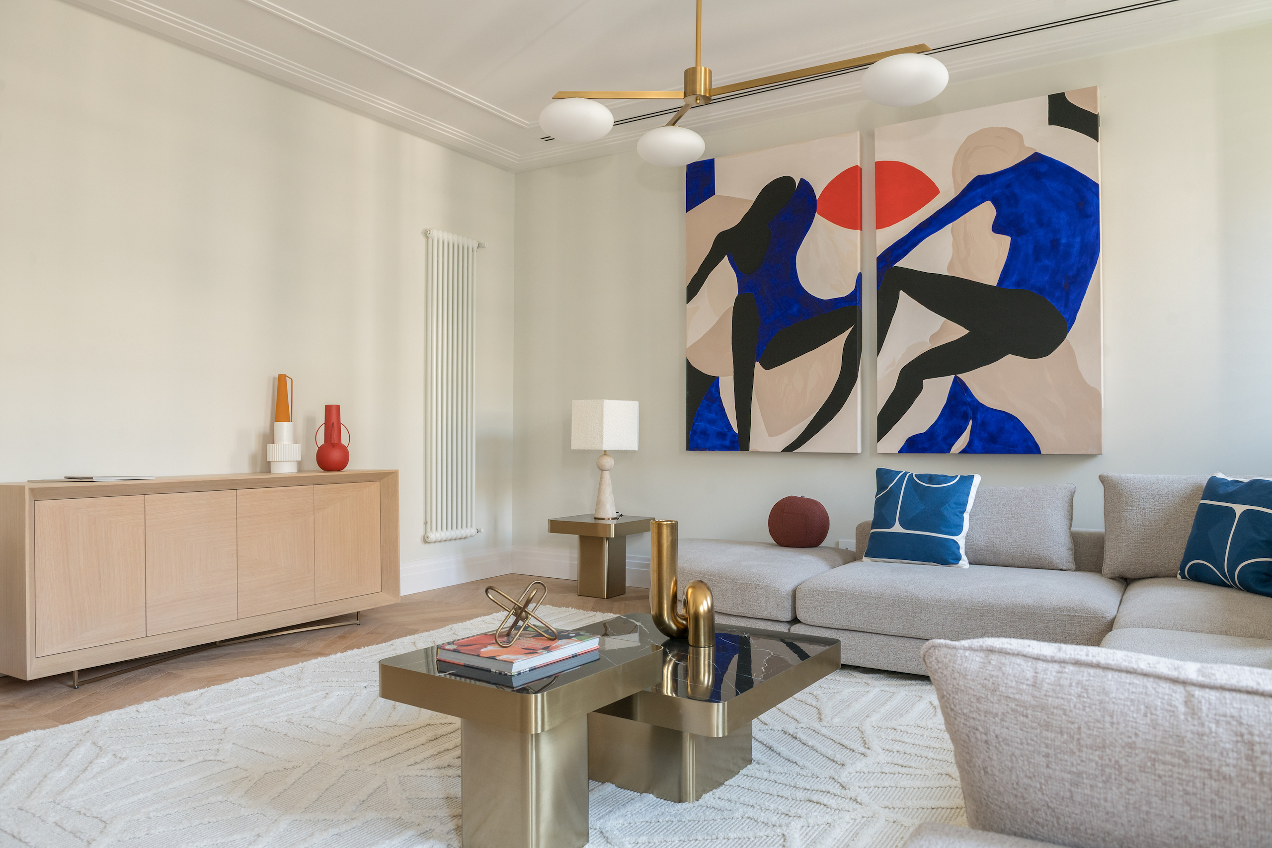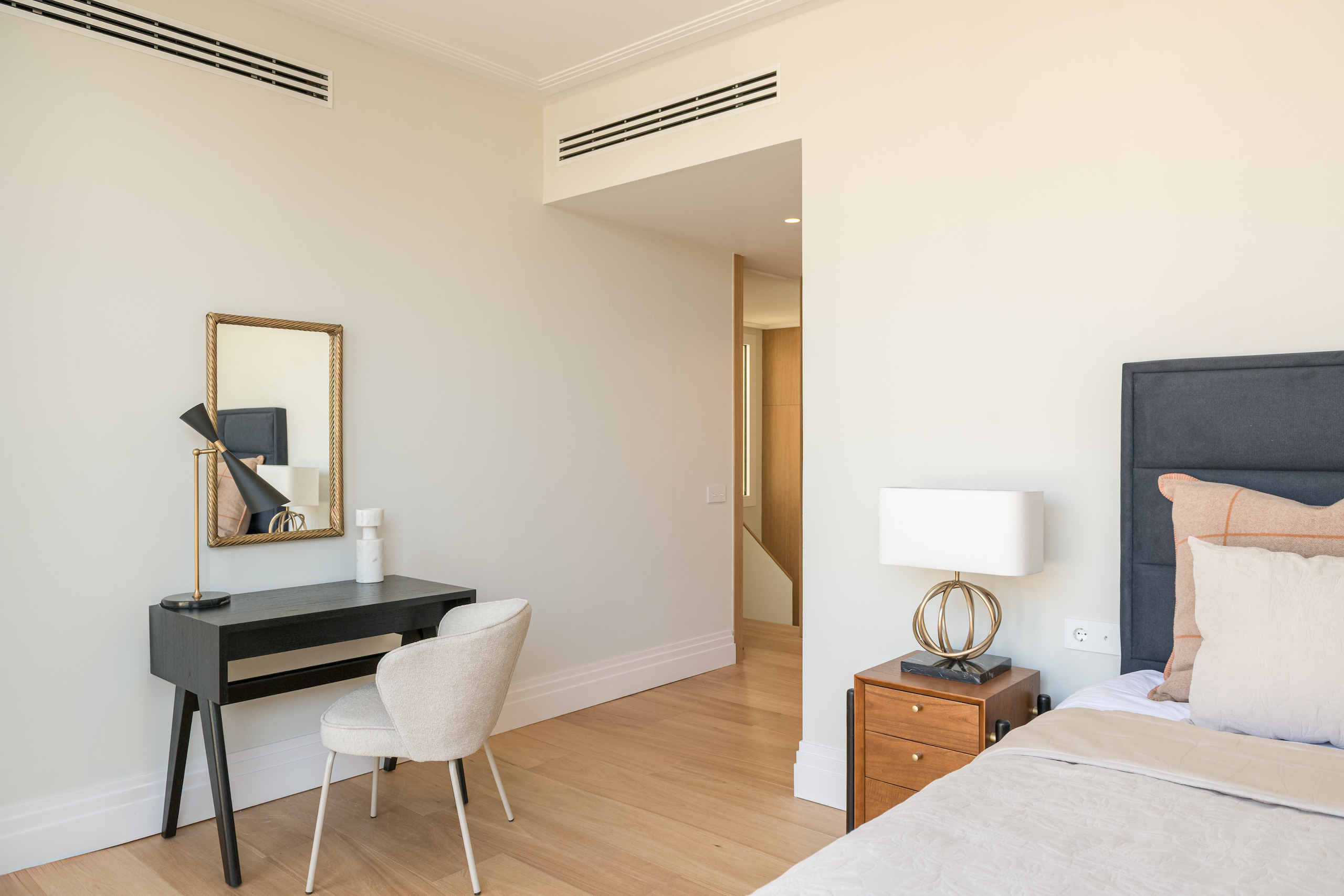 When we were making a design for this beautiful apartment in the center of Barcelona, we were very inspired by luxury hotels. With special art pieces we gave more color to the spaces. Who wouldn’t want to wake up in this bedroom every morning, right?